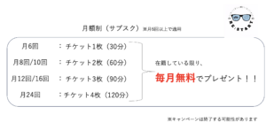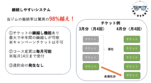 月6回コース以上の場合は、毎月無料でチケットをプレゼントしております!